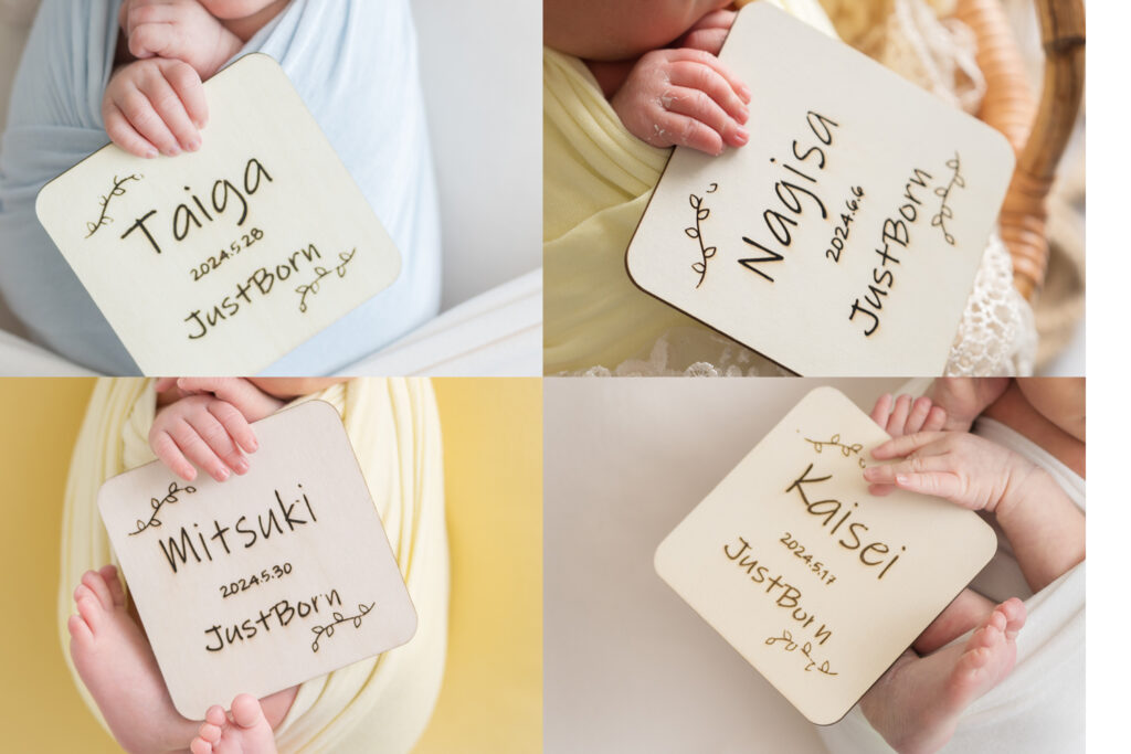 ②赤ちゃんのお名前入り小物の作成(予約日前日の13時までに赤ちゃんのお名前をお知らせいただけない場合は作成できません)